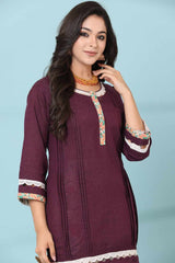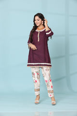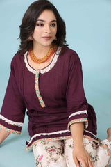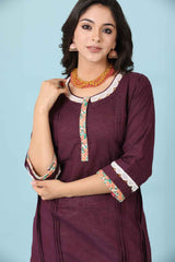 Cotton Kurta with French lace and digitally printed cotton silk pants . Fabric -Cotton & Cotton Silk