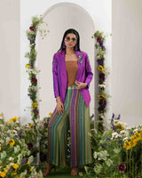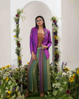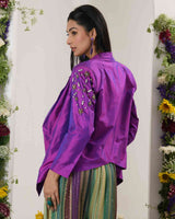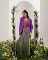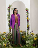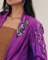Pure silk Blaxer with intricate handwork on arms and lapel with sequenced pants .Fabric-Silk , Georgette