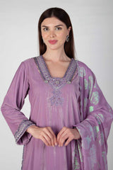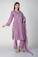 Pastels in Velvet this winter with beautiful handwork of sequence , beads and silk thread with holographiv chiffon dupatta . Fabric - Velvet, Chiffon