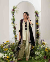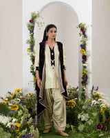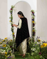 Brocade Straight salwar suit with velvet cape. Intricate handwork of rhinestone and pearl makes it elegant . Fabric-Brocade,Velvet