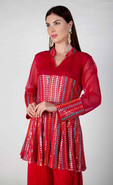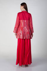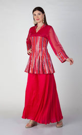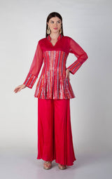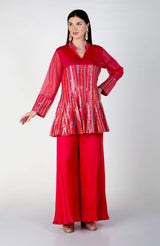 Indowestern sequenced A line short top with Sharara pants.Fabric- Georgette, Modal