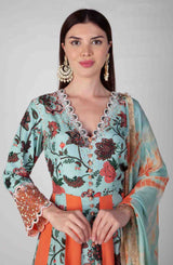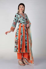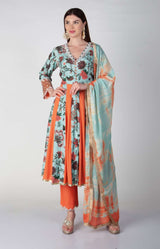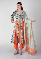 Crepe anarkali set with mirror, sequence and thread work on Anarkali kurti and Pants