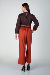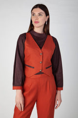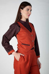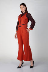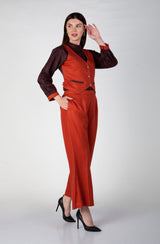 Brick Orange office trouser and shirt in suede and teri wool . Fabric- Suede & Teri Wool