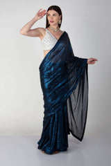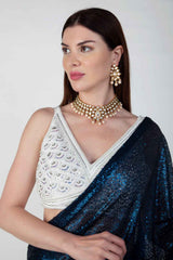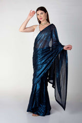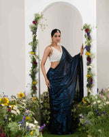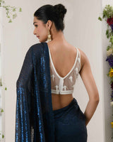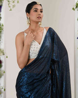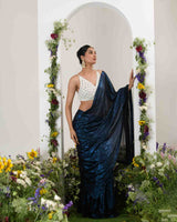 Adorned with intricate handwork featureing pearls, holographic sequins and beads.come with stitch beaded tulle blouse.