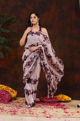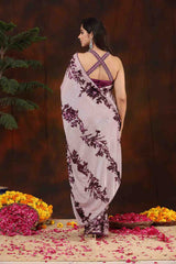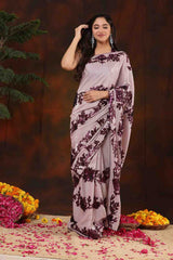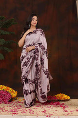 This ensemble boasts intricate handwork featuring beads, sequences, cutdana, rhineshone, and silk thread detailing. Come with satn stitch blouse.